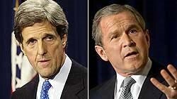 Сүрөттө: (солдон оңго) президенттикке талапкер Жон Керри жана президент Жорж Буш.