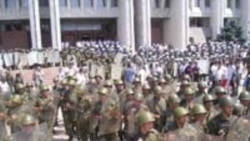 Аңгыча өкмөт үйүнө кирип алган пикетчилер милиция кызматкерлеринин курчоосунда арткы дарбазаны көздөй жөнөштү. Аларга миркрофон сунганыбызда милициялар сабап, күч менен чыгарышты деп билдиришти: