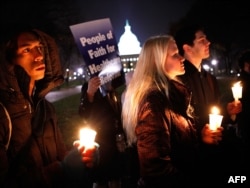 Саламаттык сактоо системасын реформалоону колдоочулар Капитол Хиллдин жанында шам кармап турушат. Вашингтон. 8-декабрь 2009