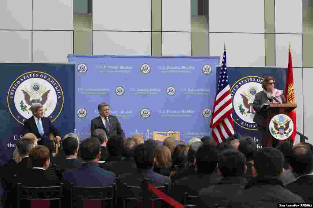 Жон Керри АКШнын Кыргызстандагы элчилигинин жаңы имаратынын ачылышына катышты.