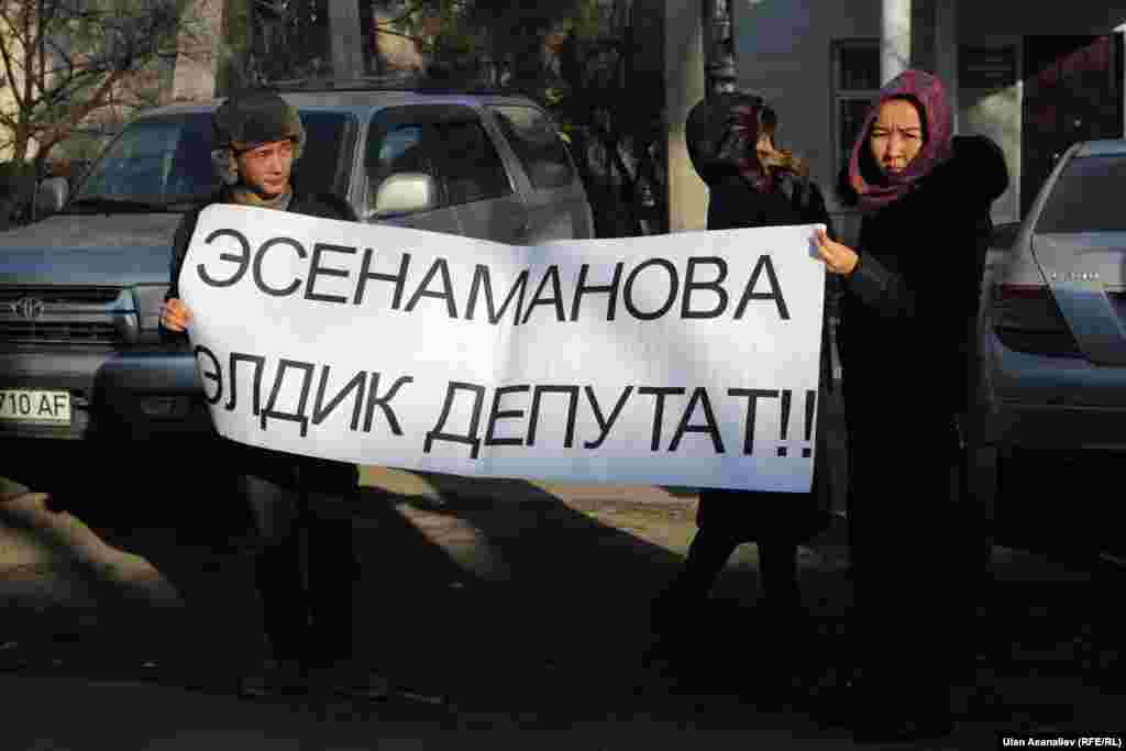 Ал арада сот имаратынын сыртында депутаттардын тарапкерлери адилет чечим чыгарылсын деген талап менен митинг өткөрүүдө.