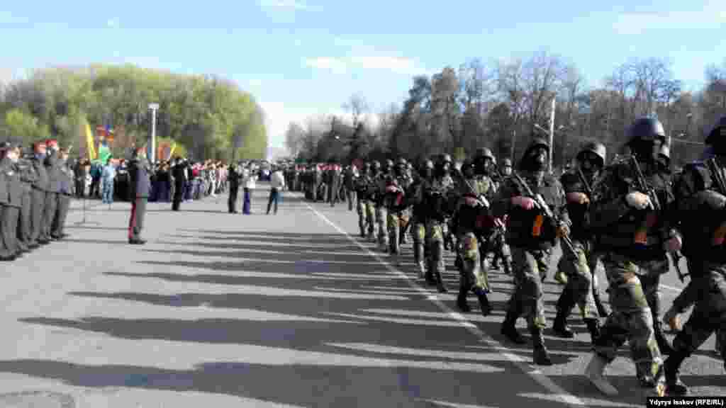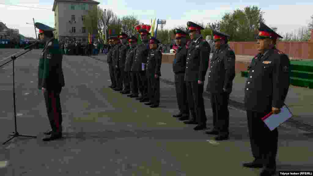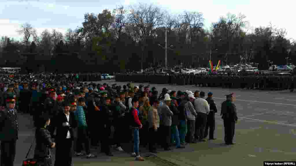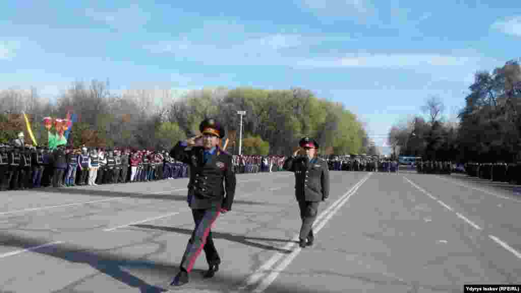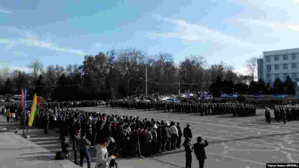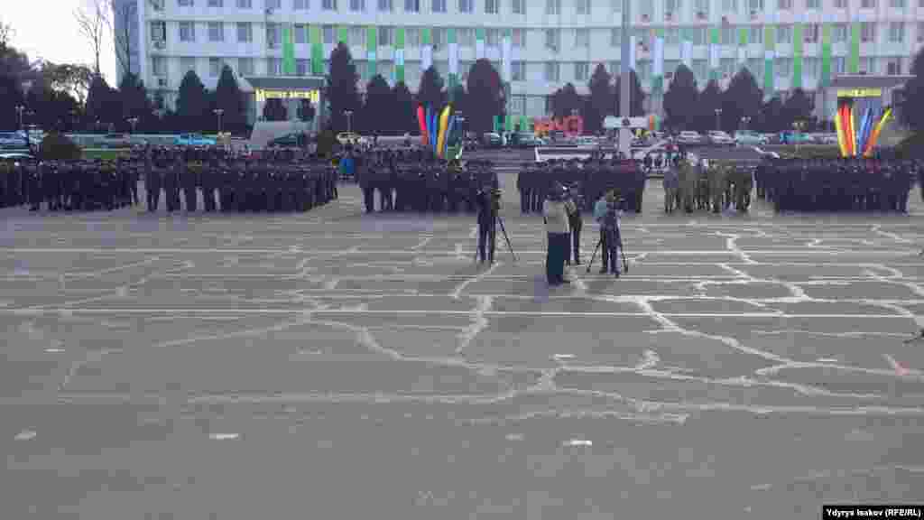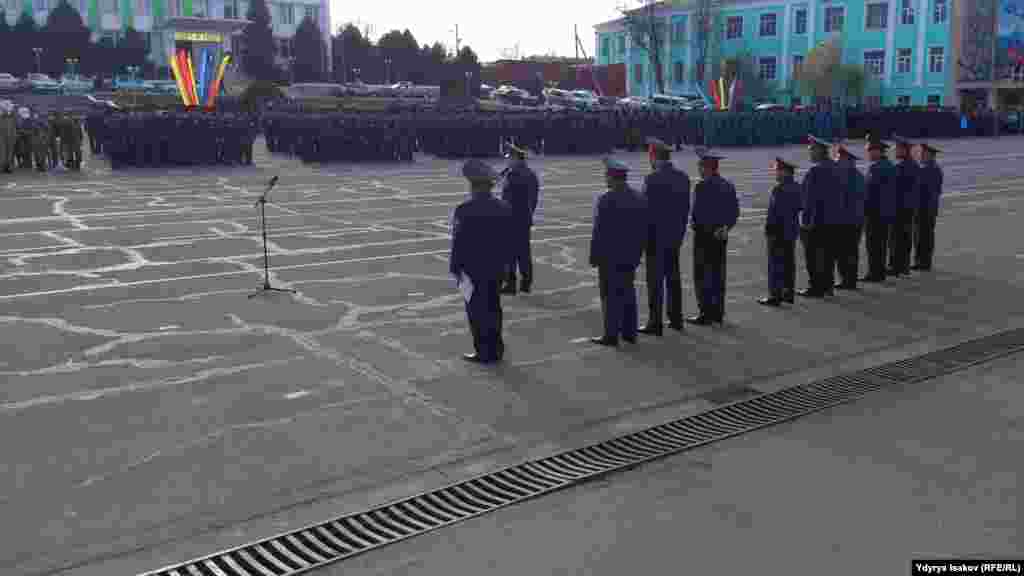 22-мартта Ош шаарынын борбордук аянтында үч миңдей милиция кызматкери катарга тизилип, даярдыктары текшерилди.