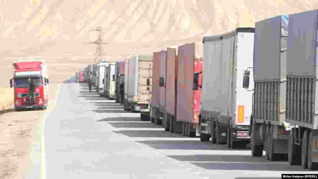 Ушул тапта Кытайдан жүк тарткан жүздөн ашык автоунаанын айдоочулары Ат-Башы районунун аймагындагы таразага тартуу бекетинде үч күндөн бери токтоп турат.