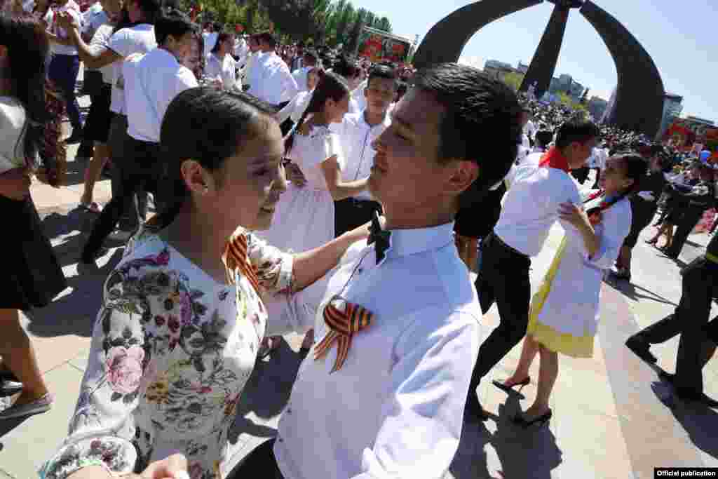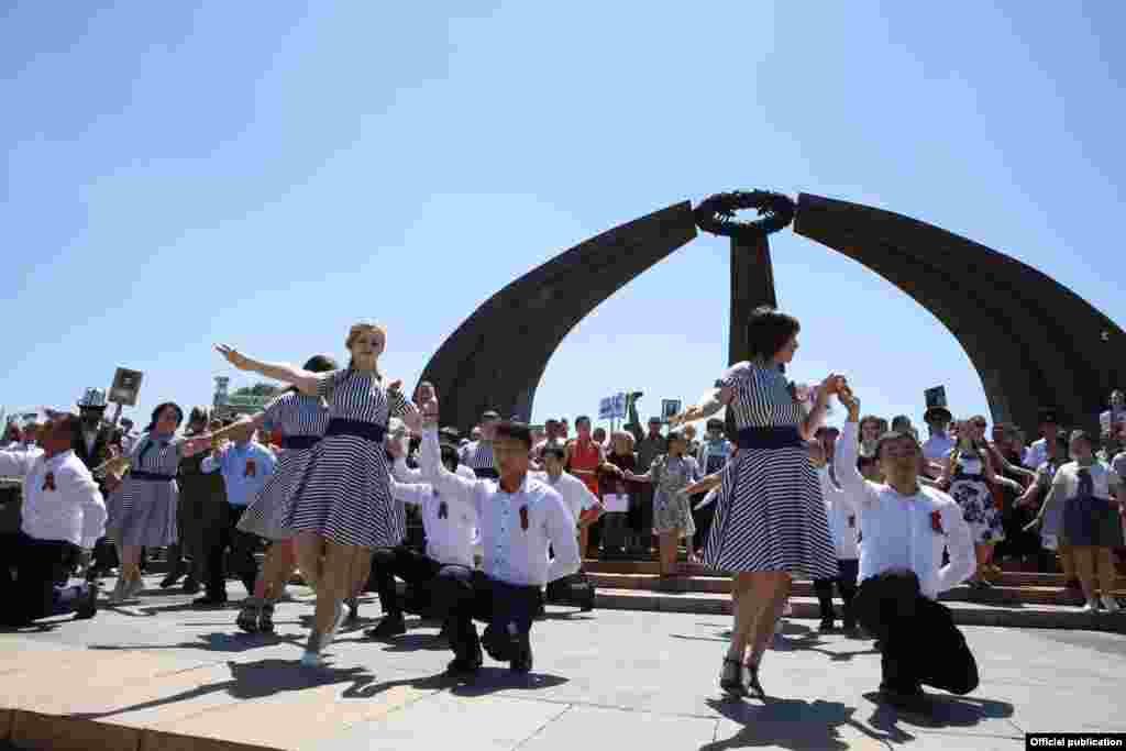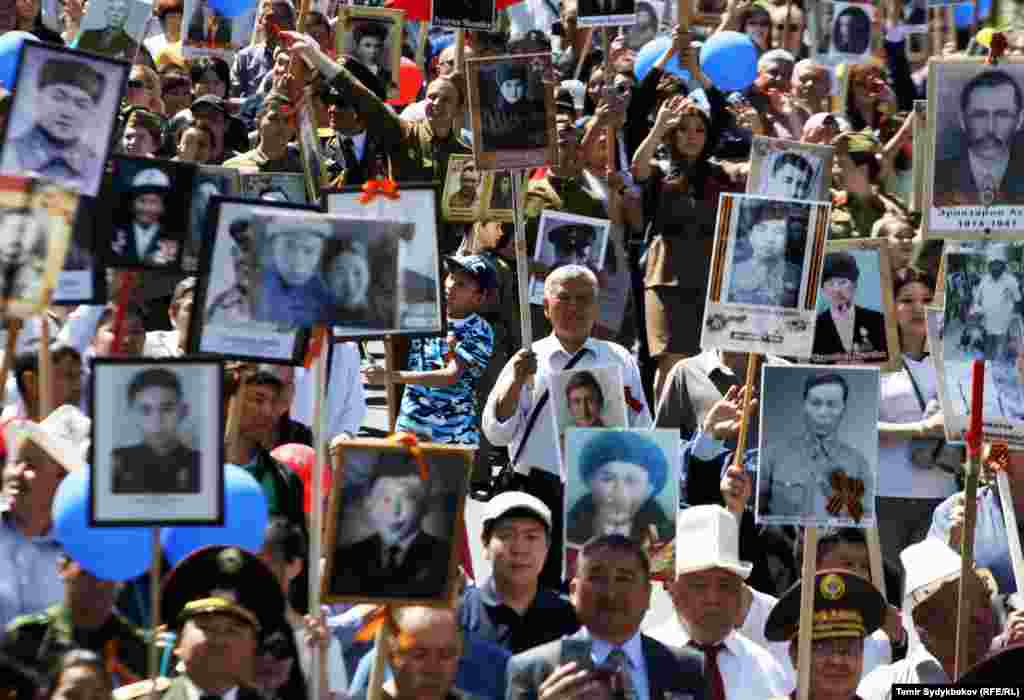 Бишкектин Түштүк дарбазасынан "Өлбөс полк" жүрүшү башталып, Жеңиш аянтында аяктады. Ага жалпысынан 30 миңдей адам катышты. Ушундай эле иш-чаралар, майрамдык параддар өлкөнүн бардык аймактарында өткөрүлдү.