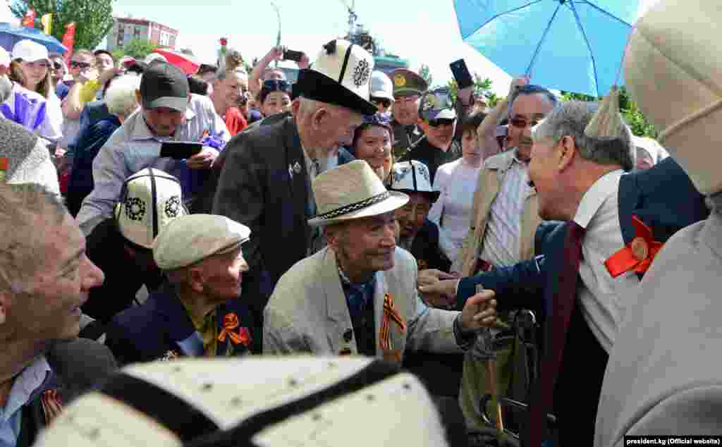 Жеңиш майрамынын 72 жылдыгына карата  Ата Мекендик согуштун катышуучуларын эскерген митинг-реквием өттү. Анда сөз сүйлөгөн президент Алмазбек Атамбаев Улуу Жеңишке кыргызстандыктардын да салымы чоң болгонун, согуш жылдары Орусия, Беларус, Украинадан эвакуацияланган жүз миңдеген адамдар Кыргызстанда камкордукка алынганын, бирок соңку жылдары Орусияда ксенофобияны, эки өлкө жана эл ортосунда кастыкты жайылткандар көп болуп жатканын белгиледи.
