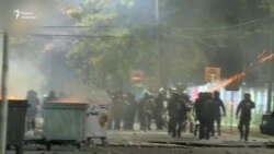 "Азаттыктын" кабарчылары тартып жаткан видеодон айрым жерлерде өрт чыгып жатканын көрүүгө болот.