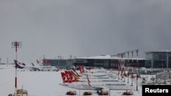 24-январдан бери калың жааган кардан улам учактар токтотулуп, уча албай калган миңдеген жүргүнчү аэропортто түнөгөн.