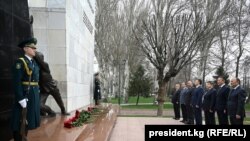 Президент Садыр Жапаров баштаган бийлик өкүлдөрү 2002-жылдагы Аксы жана 2010-жылдагы Апрель окуяларында элдин эркиндиги үчүн курман болгондордун элесине арналып тургузулган "Ала-Тоо" аянтындагы монументке гүл коюшту.