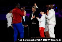 Эл аралык Олимпиада комитетинин башчысы Томас Бах легендарлуу спортчулар: кубалык балбан Михаин Лопез, франциялык дзюдочу Теди Риннер, кениялык марафончу Элиуд Кипчоге, австралиялык сууда сүзүүчү Эмма Маккеон, кытайлык стол теннисчиси Сун Инша жана качкындар командасынан мушкер Синди Нгамба менен бирге Олимпиаданын отун өчүрүштү.