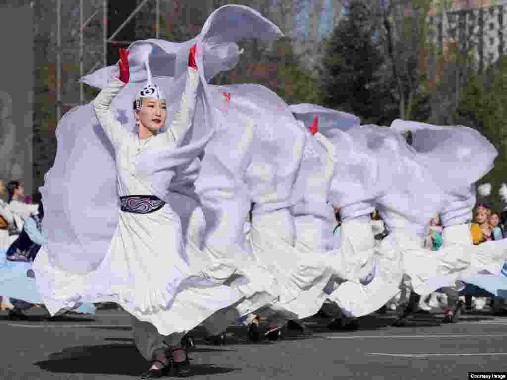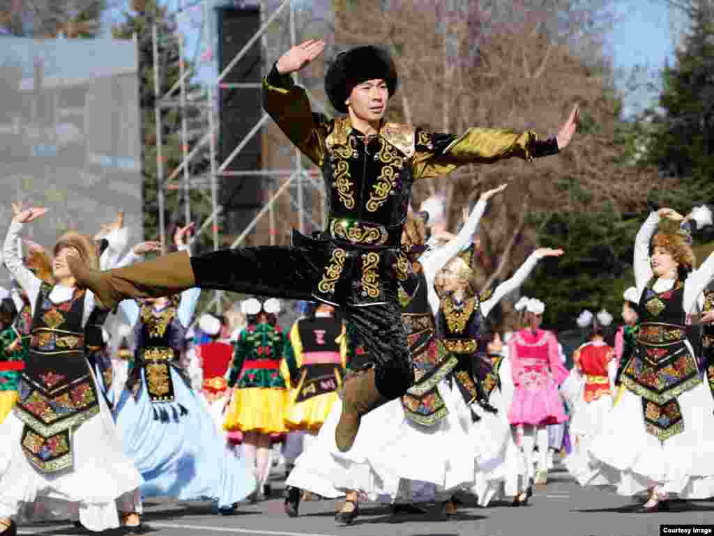 Майрамдык шаң, чет элдик студенттердин бийи. Бишкек, Оштогу Нооруз