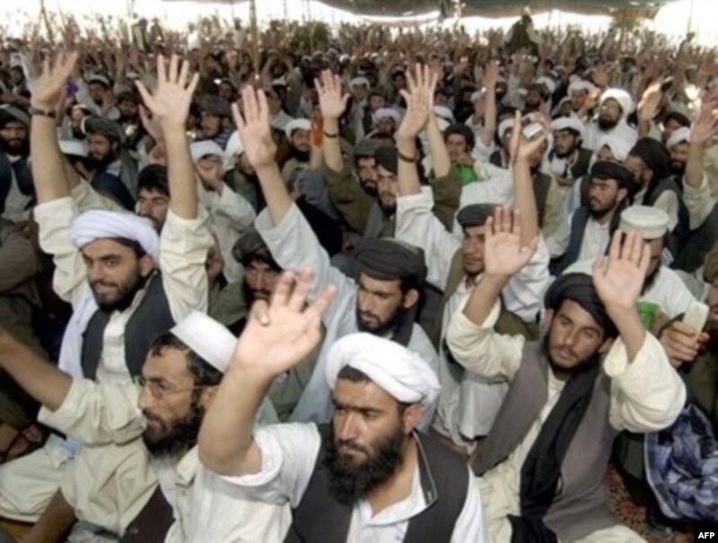 Пакистан. Талиптердин колдоочулары Ооганстан-Пакистан чек арасына жакын кыштактардын бириндеги жыйында. 1-июнь 2007-ж.
