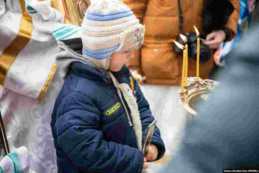 Ош шаарындагы православдардын жалгыз Архангел Михаил чиркөөсүнө эртең менен чогулгандар майрамды кудайдан ырайым суроо, ага сыйынуу менен баштады.
