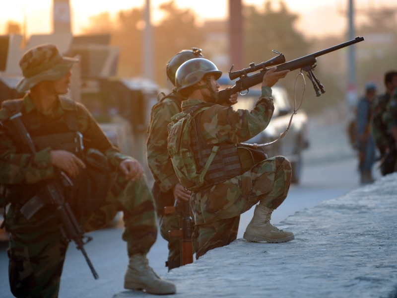 Ооган аскер "Intercontinental" мейманканасындагы талип согушчандарын бутага алууда. Кабыл. 29-июнь 2011