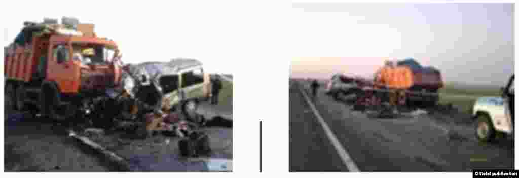 Алматы-Екатеринбург жолунда 16 кыргыз жаранынын өмүрүн алган кырсык. (Сүрөттөрдү "Азаттыкка" Казакстандын Караганда облусунун ички иштер департаменти сунуштады.)