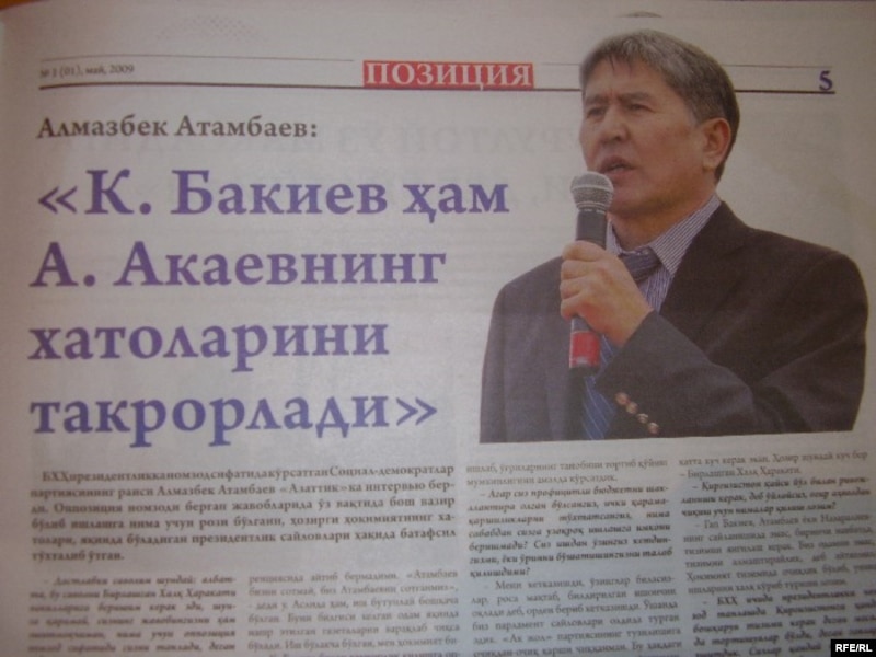 Ошентип эми эле жарыкка чыга баштаган оппозициялык маанайдагы «Позиция» гезити коомчулукта кызуу талкуу жаратууда. Анын жетекчилиги гезитке басылган ар бир материалды дыкат текшерип, айтор, бийликке жаза тайуудан сактанып турушкан чагы. Буга чейин К.Бакиев бийлигин кескин сынга алчу «Де-факто», «Алиби» гезиттери жабылып, Жалал-Абаддагы «Сентябрь» телеканалы да ишмердүүлүгүн токтотууга аргасыз болгону бар.