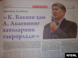 - Мен бул гезиттен Кыргызстандагы саясий кырдаалды, оппозициянын билдирүүлөрүн, бийликтин кемчиликтерин окудум. Чынында Оштогу өзбектер оппозициянын программаларынан, алардын иш-аракеттеринен такыр кабарыбыз жок болчу. Мына, маселен, Чүйдө чоң курултай өткөнүн эми билип жатам. Алмазбек Атамбаевдин, Өмүрбек Текебаевдин маектери да жарык көрүптүр.