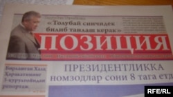 Түштүктө ушул айдан тарта «Позиция» деген өзбек тилиндеги гезит чыга баштады. Оппозициялык маанайдагы басылманын жетекчилиги укук коргоо кызматкерлери гезитти окурманга жеткирбөөнүн амалдарын көрүп жатышат деп билдирди. Серепчилер болсо басылманы президенттик шайлоодо өзбек электоратынан колдоо табууга аракет кылган оппозициянын “утурумдук гезити” деп эсептешүүдө.