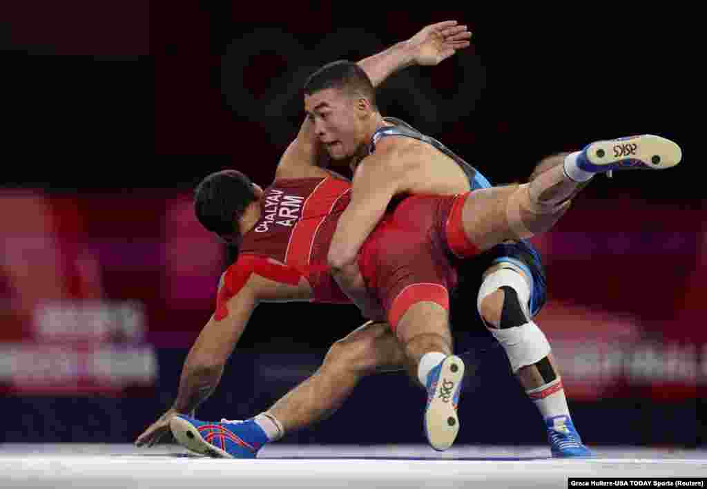 Токиодо өтүп жаткан XXXII Олимпиада оюндарында грек-рим күрөшү боюнча 77 килограмм салмакта кыргызстандык Акжол Махмудов армениялык атаандашы Карапет Чальянды жарым финалда 6:2 эсебинде жеңип, финалга жолдомо алды.