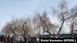 Ноокат райондук акимчиликтин алдында нааразылык акциясына чогулган 500гө чукул киши буга чейин каза болгон райондук салык инспекциясынын башчысы Сагынбек Алимбаевдин өлүмүнө күнөөлүүлөр кармалсын деген талаптарын коюшту.