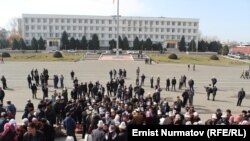 "Ата Журт" партиясынын лидерлеринин бошотулушун талап кылган митинг Ошто да уланды. Чогулган 300-400дөй адам менен өкмөттүн өкүлү жолугушту.
