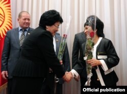 Спикер Ахматбек Келдибеков президент Роза Отунбаевага Жогорку Кеңештин Ардак грамотасын тапшырды.