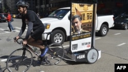 "Биз бул жерге Ахмадинежаддын жана Иран делегациясынын Нью-Йоркко келишине, "Варвик" мейманканасынын аларды жайгаштыруу чечимине каршылыгыбызды билдирип чыктык", - деди акциянын уюштуруучусу Давид Ибсен.