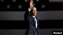 Мөөнөтү аяктап жаткан президент жубайы Мишел Обамага аны колдоп кубаттаганы үчүн, кыздарына жооптуу мезгилде өздөрүн татыктуу алып жүргөнү үчүн ыраазычылык билдирди.