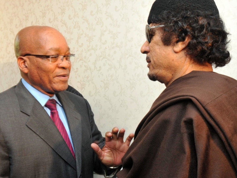 Түштүк Африка Республикасынын президенти Жейкоб Зума жана Ливиянын лидери Муаммар Каддафи, Триполи, 30-май, 2011-жыл